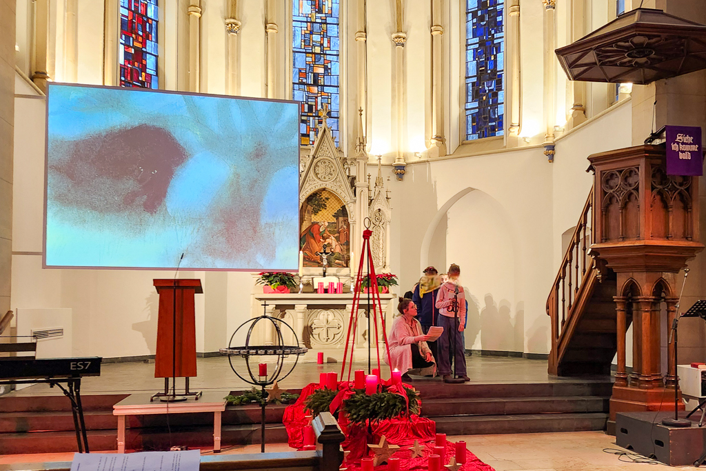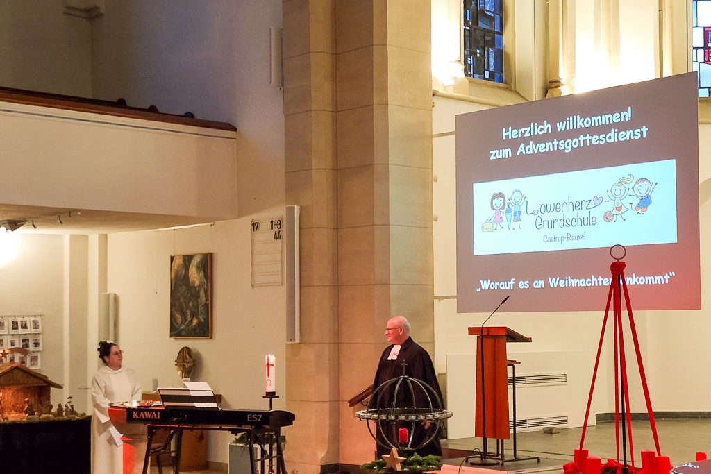 Am 12. Dezember feierten wir unseren Adventsgottesdienst „Worauf es an Weihnachten ankommt“ in der Lutherkirche. Einige Eltern und Großeltern folgten unserer Einladung und nahmen am Gottesdienst teil. Pfarrer Wittekind und Frau Brandt-Gösmann führten durch den Gottesdienst.
