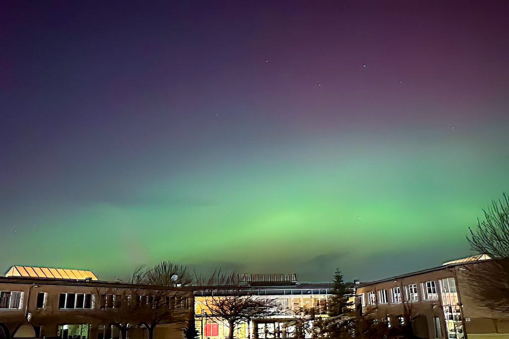 Einige Tage später in einer klaren Nacht konnte man über dem Schulgebäude am Himmel diese wunderschönen Polarlichter beobachten und einfach nur darüber staunen.